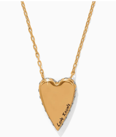 Colorful hand-set European crystals add a radiant accent to every look, and a special message, Love Knows, makes this elongated heart pendant meaningful.