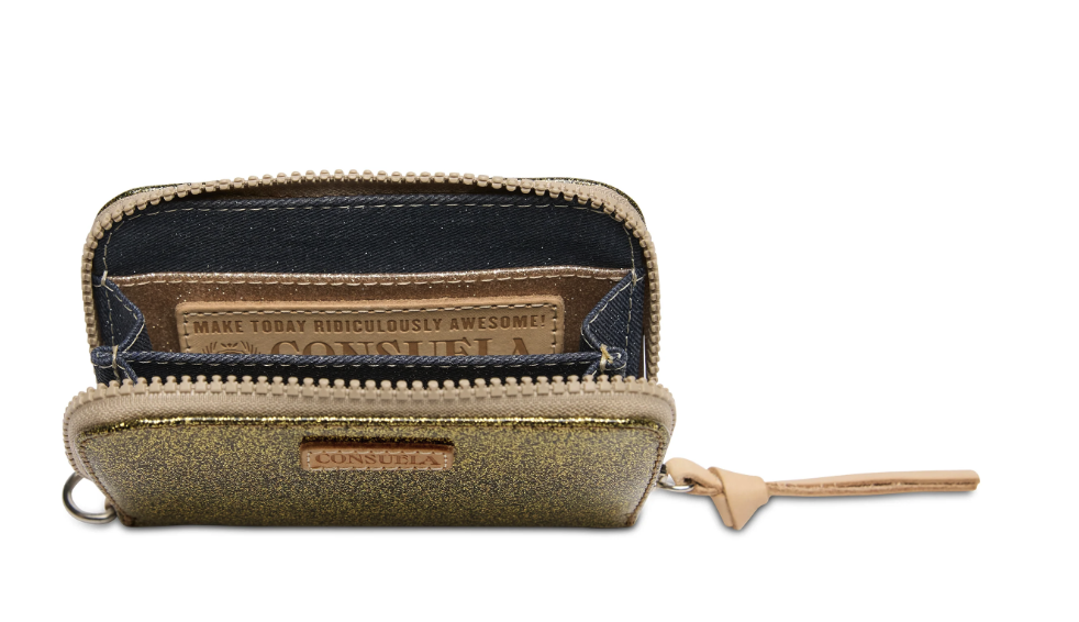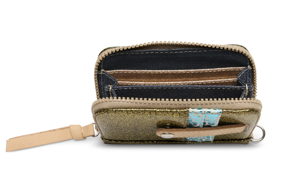 Say hello to Zippy, our newest wallet. This small, but mighty companion has both interior and exterior card slots with a zip closure. Use the D-ring to securely attach Zippy to your bag lanyard or combi wristlet.