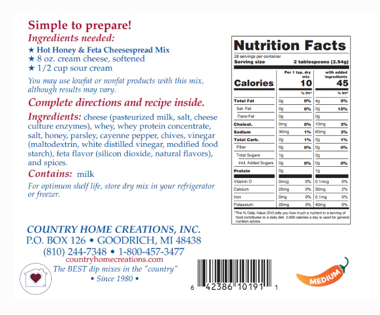 Elevate your taste buds with Hot Honey & Feta Cheesespread Mix. This mouthwatering blend of sweet honey, tangy feta, and spicy cayenne pepper will surely be a hit at your next party. Perfect for dipping fresh vegetables, pretzels, pita chips, and more, Hot Honey & Feta Cheesespread Mix takes snacking to the next level. This elevated sweet and spicy dip will upgrade movie nights, parties, and everyday snacking.