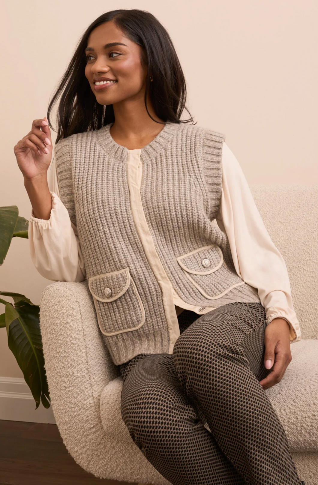 Cozy Sleeveless Knit Vest w/ Hidden Buttons