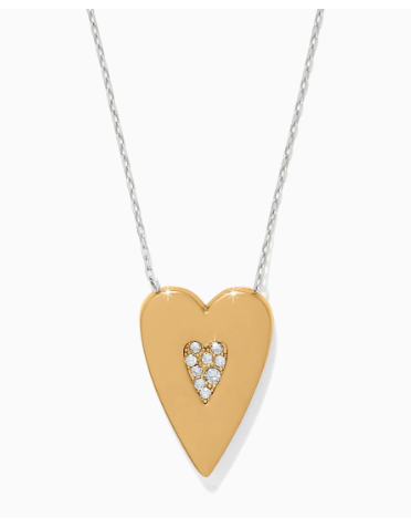 Colorful hand-set European crystals add a radiant accent to every look, and a special message, Love finds a way, makes this elongated heart pendant meaningful.