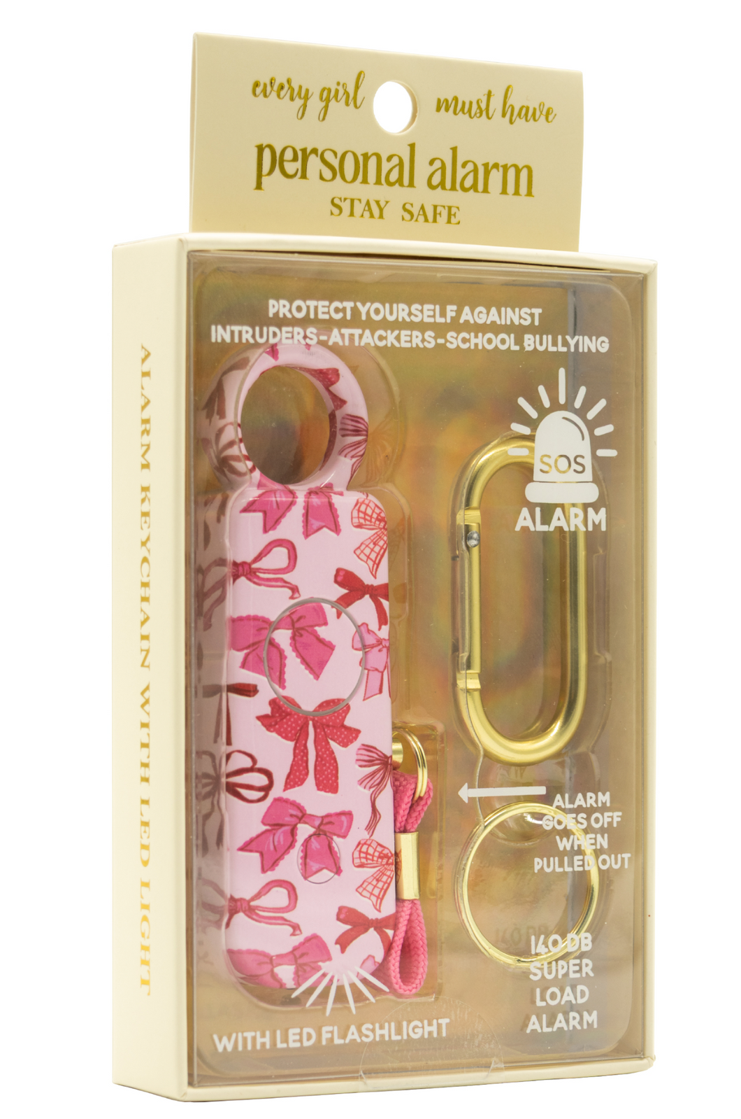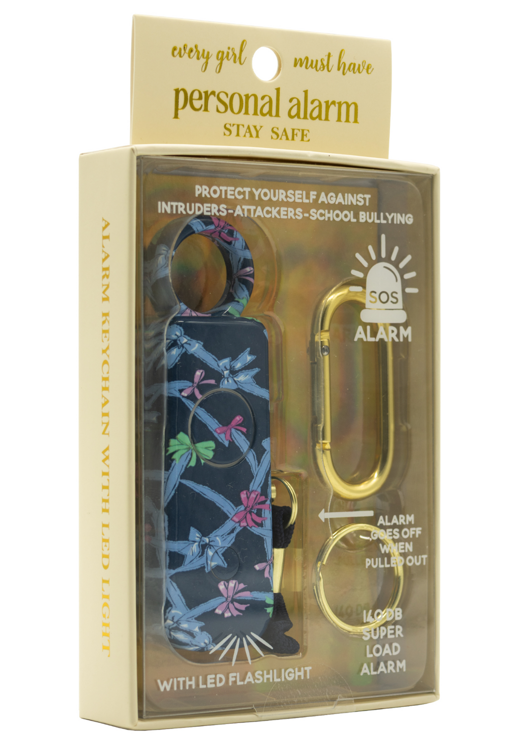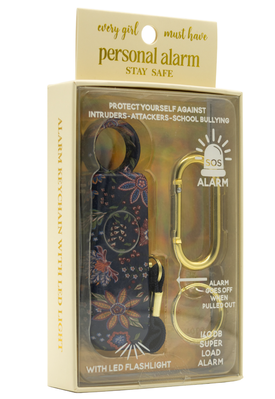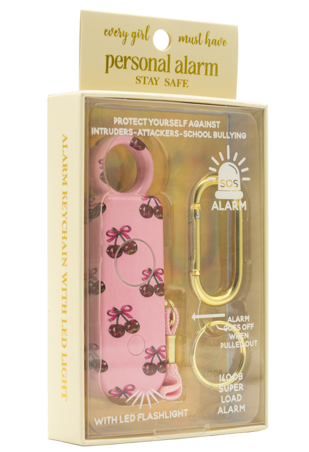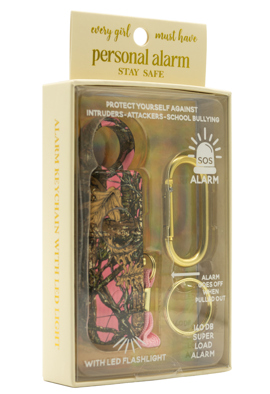 Protect against intruders, attackers and school bullying. Alarm goes off when pulled out. Also features a flashlight.